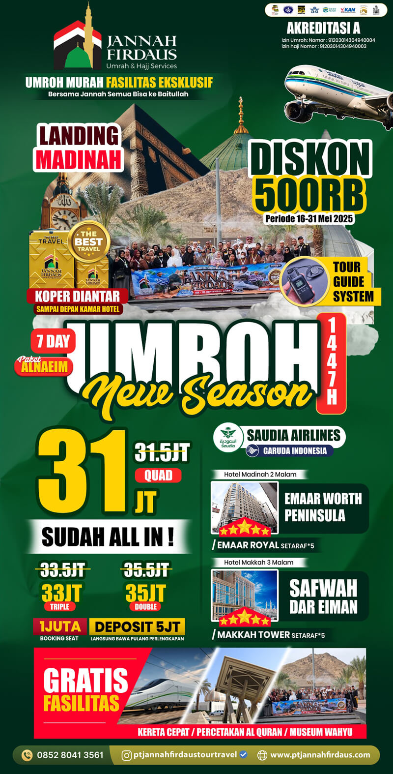 Syarat dan Ketentuan Pendaftaran Umroh 7 Hari Paket Alnaeim Jannah Firdaus Tour Travel.