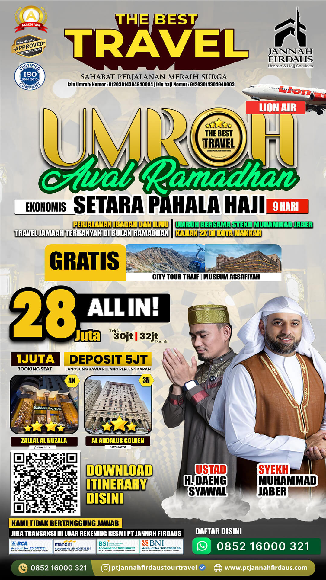 Itinerary Paket Umroh Awal Ramadhan Ekonomis durasi 9 Hari Jannah Firdaus Tour Travel.