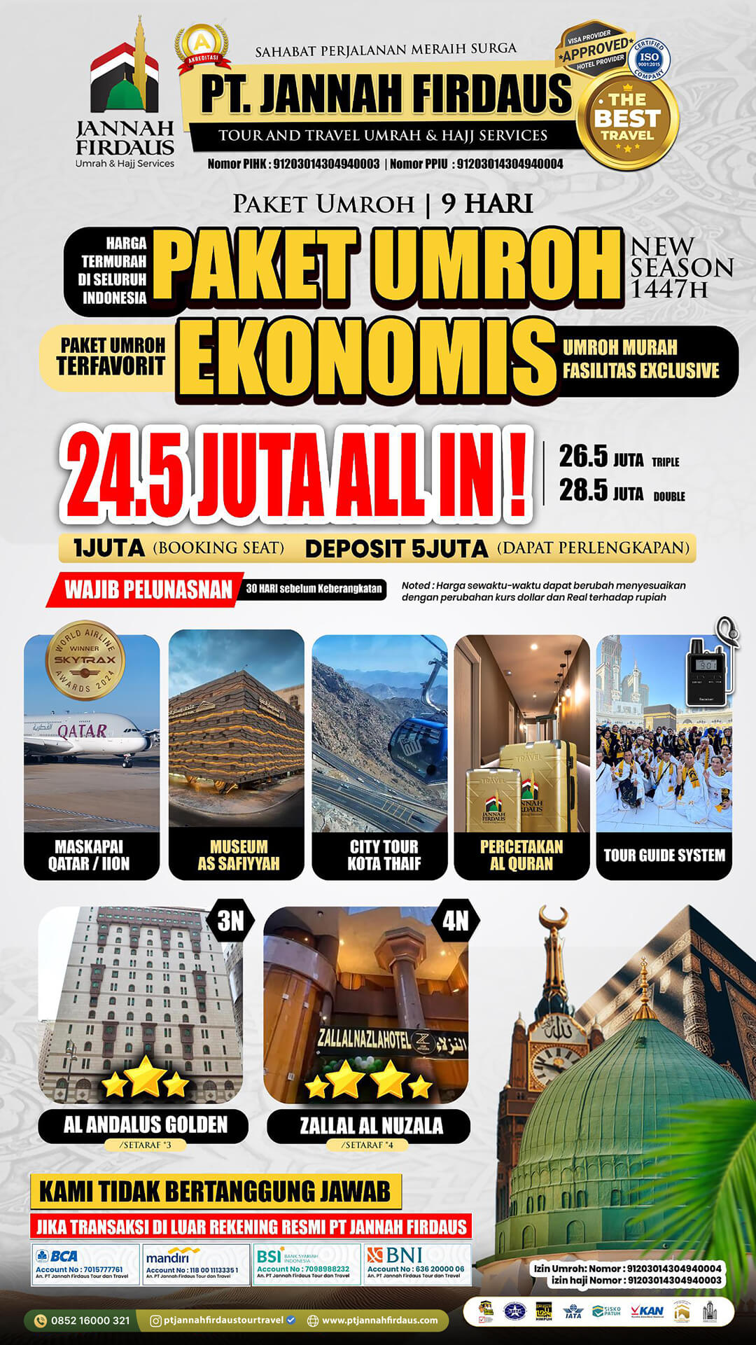 Itinerary Umroh September 2026 Paket Umroh Promo 9 Hari Keberangkatan Bandara Soekarno Hatta Jakarta Jannah Firdaus Tour Travel.