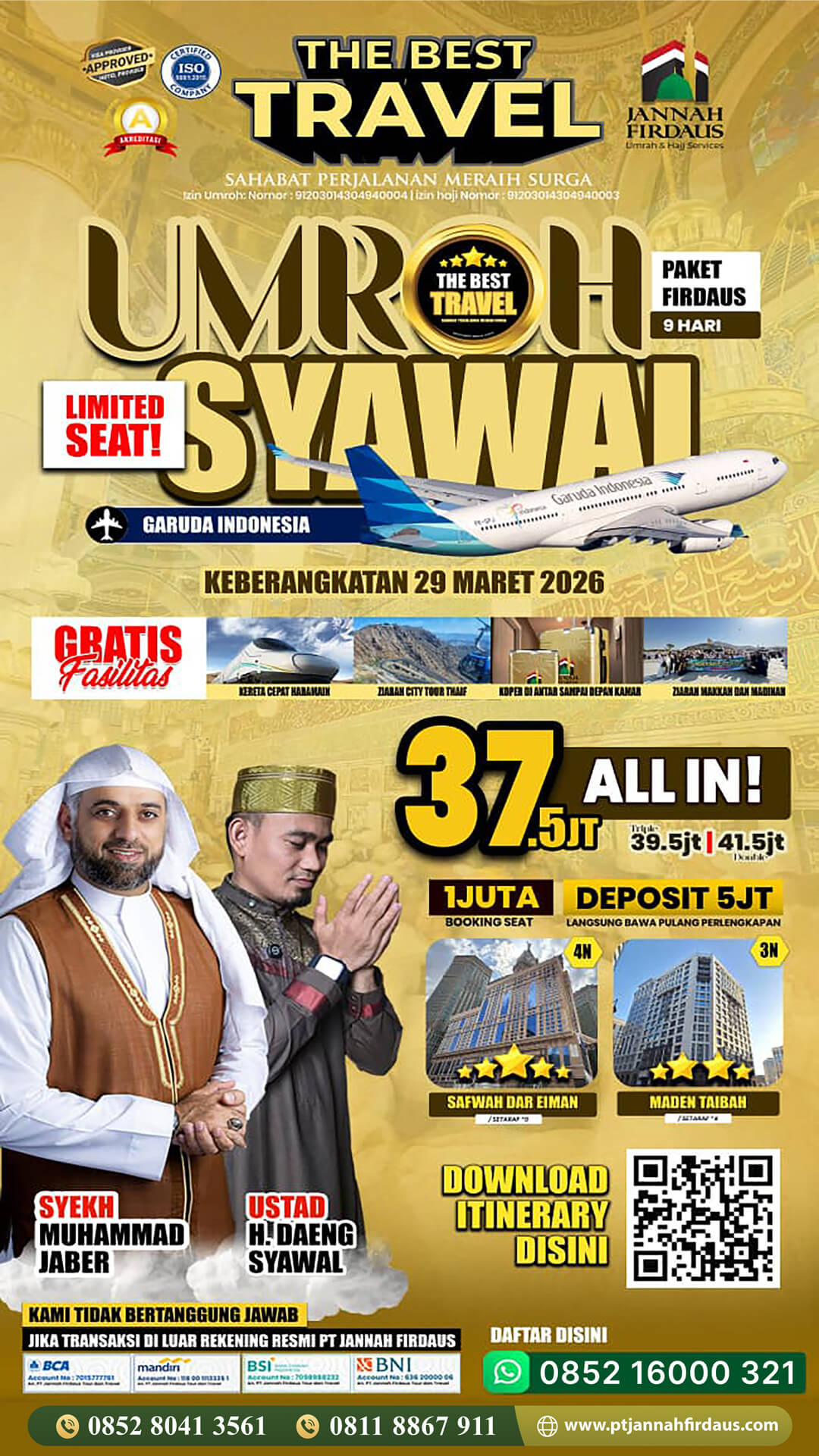 Syarat dan Ketentuan Pendaftaran Umroh Bulan Syawal Firdaus 9 Hari PT Jannah Firdaus Tour Travel.